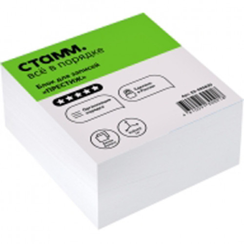 Блок для записи СТАММ 9*9*4,5 см. белый, плотная, непрокл.