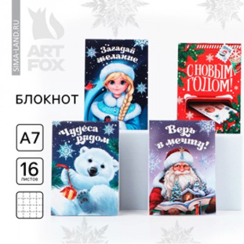 Блокнот А7 16л, "С Новым годом!" скрепка, клетка, ArtFox