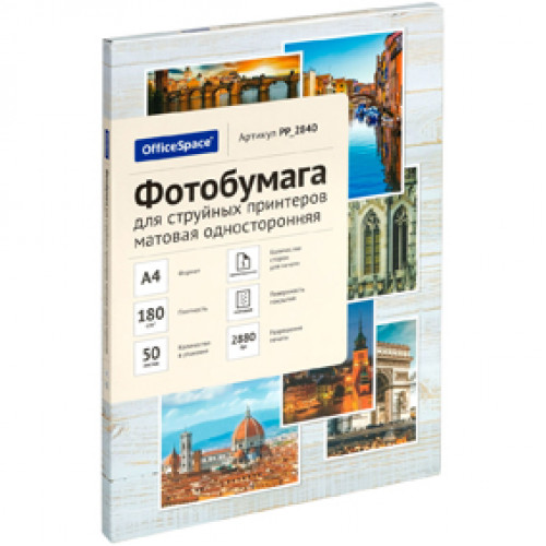 Фотобумага А4 180г/м2 (50л) матовая односторонняя, OfficeSpace