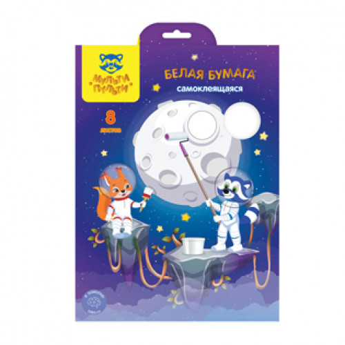 Белая бумага самоклеящаяся А4, "Енот в космосе", 8л., в папке, Мульти-Пульти