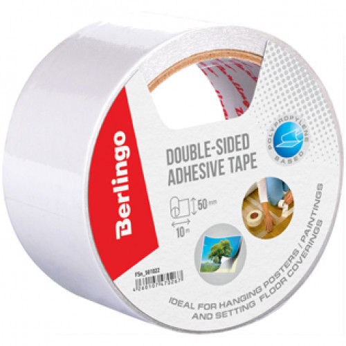 Клейкая лента двусторонняя 50мм*10м, основа полипропилен, Berlingo