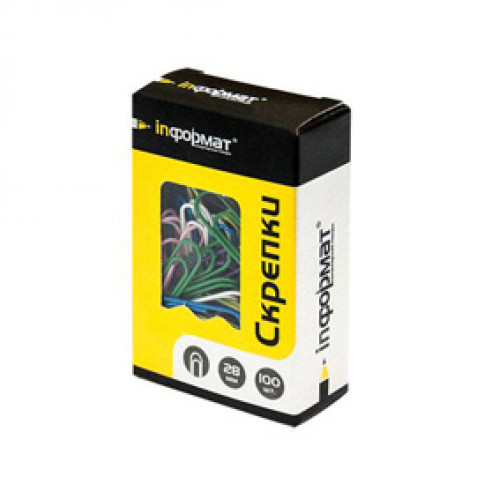 Скрепки 28мм.100шт. цветные, inФОРМАТ