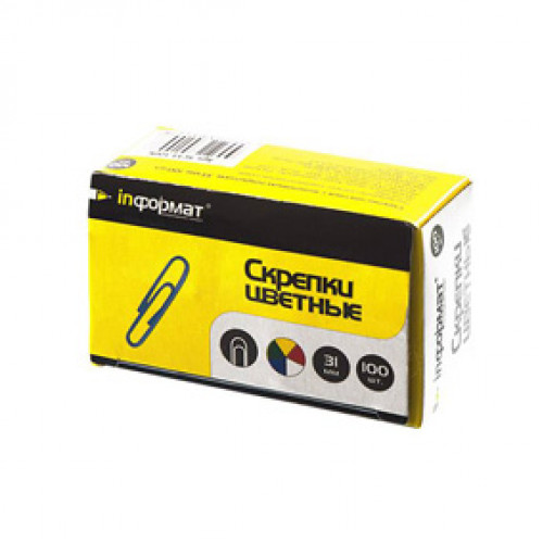 Скрепки 33мм.100шт. винил, цветные, inФОРМАТ