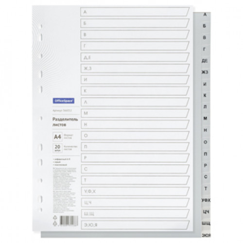 Разделитель А4, А-Я, 20 листов, серый, Brauberg