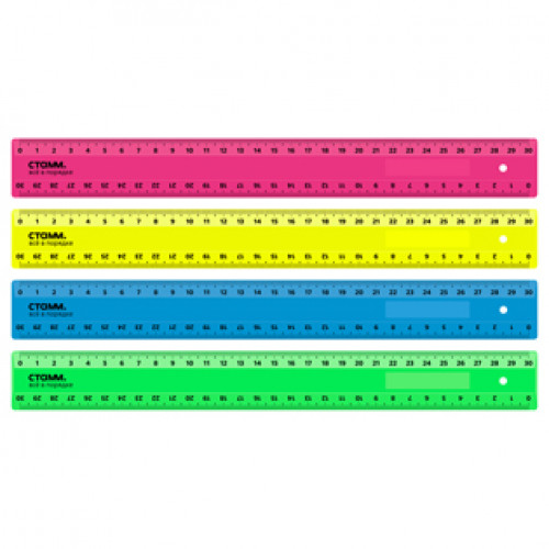 Линейка 30 см. непрозрачная, 2 шкалы, неон ассорти, СТАММ