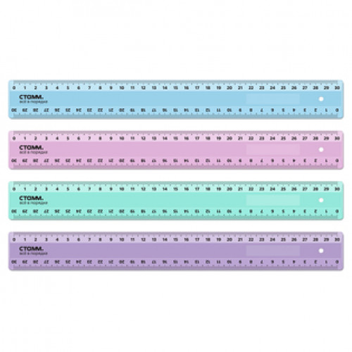 Линейка 30 см. непрозрачная, 2 шкалы, пастель ассорти, СТАММ