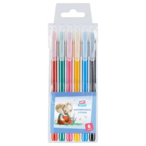 Набор шариковых ручек 6цв. 1мм, "Рисунки. Lovely animals", ArtSpace