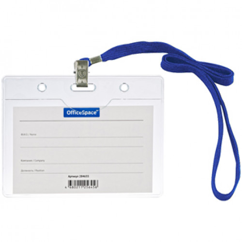 Бейдж горизонтальный 100х75мм, с клипсой на шнурке