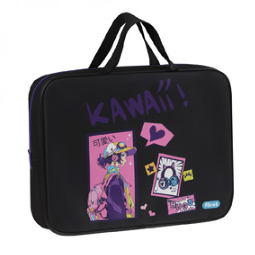Папка с ручками A4 на молнии "Kawaii", 350*265*80мм, текстиль, Först