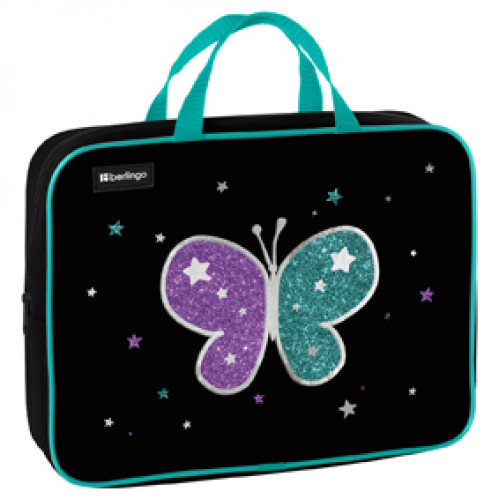 Папка с ручками A4 на молнии "Shining butterfly", 350*265*80мм, текстиль, Berlingo