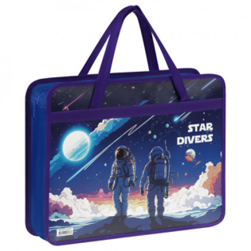 Папка с ручками A4 на молнии "Star divers", 75мм, пластик, Спейс