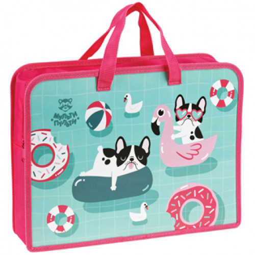 Папка с ручками A4 "Happy Pugs", пластик, на молнии, 75мм, Мульти-Пульти