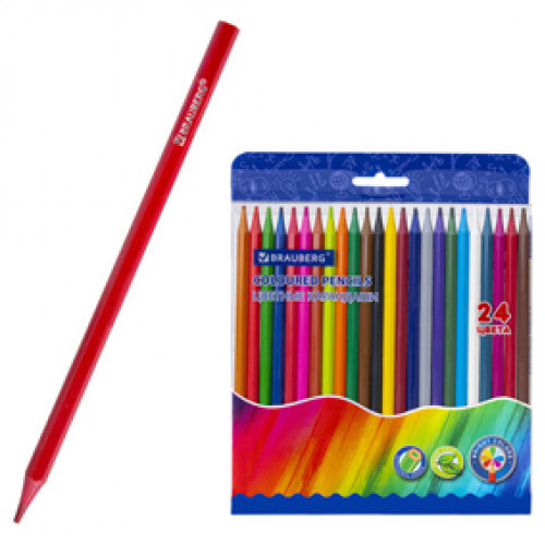 Карандаши 24цв. BRAUBERG, цв.корпус, ПВХ бокс