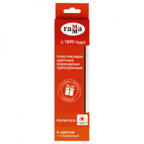 Карандаши 6 цв. "Мультики", +1 серебряный, пластиковые, Гамма