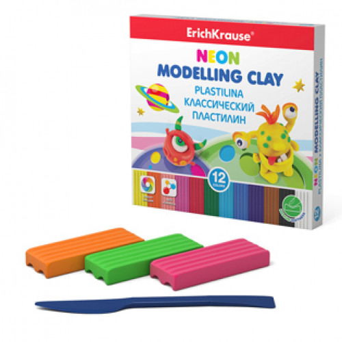Пластилин Monsters Neon 12цв. неоновые цв., со стеком, 180 г, ЕК